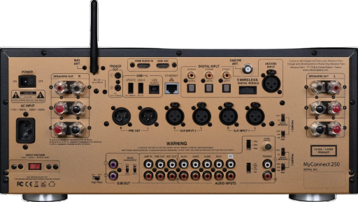 Le MyConnect 250 est un amplificateur intégré connecté tout-en-un avec une pré amplification tubes, mais qui va encore plus loin que le 150 avec sa puissance de 2 x 190 Watts sous 8 ohms grâce à un double transformateur toroïdal.